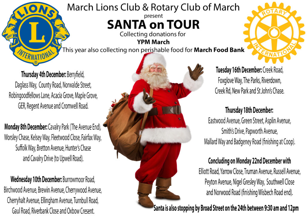 Once again March Lions Club with the help of the Rotary Club of March are working together to take Santa on a tour of the streets of March.